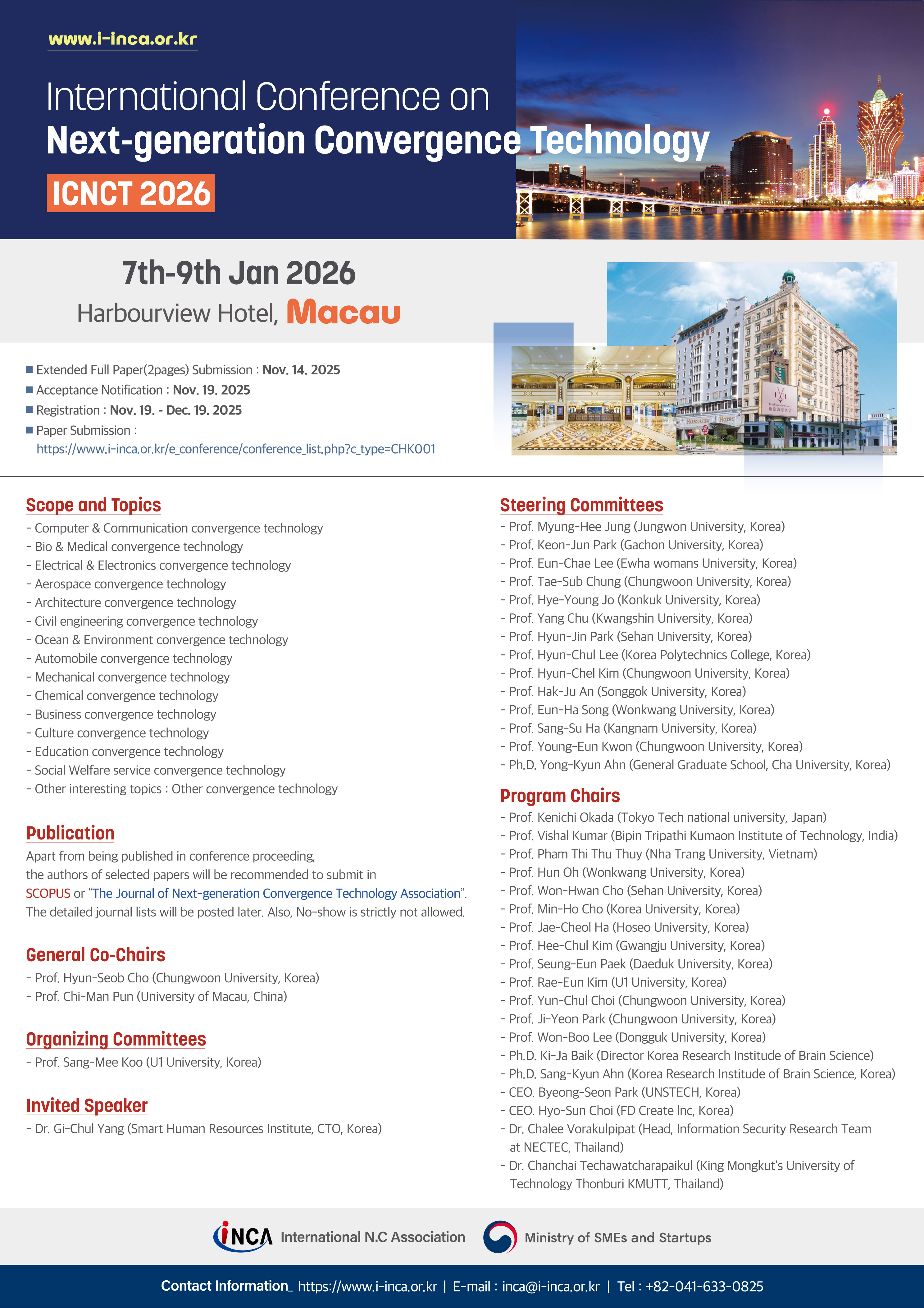 ICNCT2026은 2026년 1월 7일~9일까지 마카오, 하버뷰 호텔에서 Conference로 진행합니다.